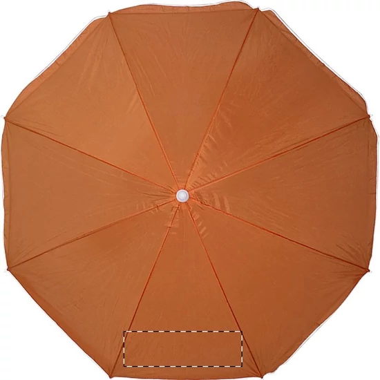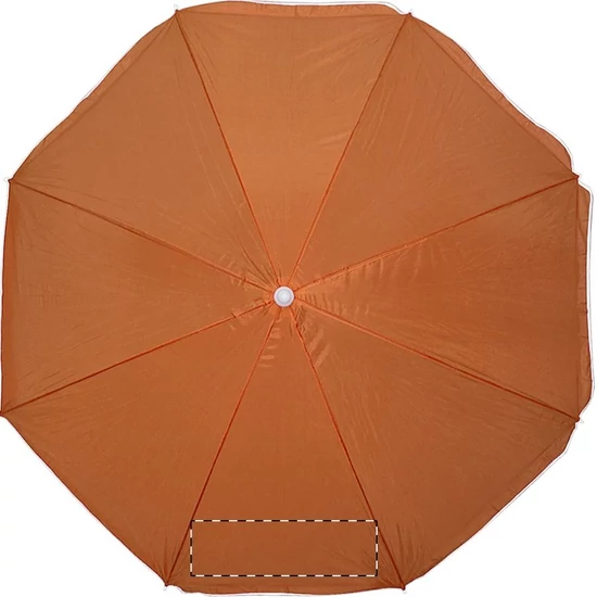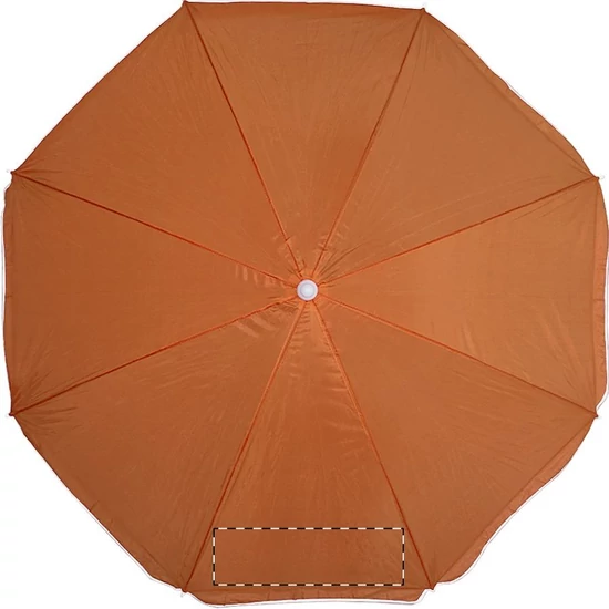 | 8 paneles napernyő a szélén kontrasztos csíkkal, fehér fém rúddal. Anyaga: nylon, 70 T. | |