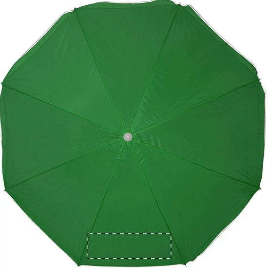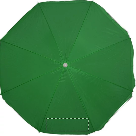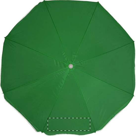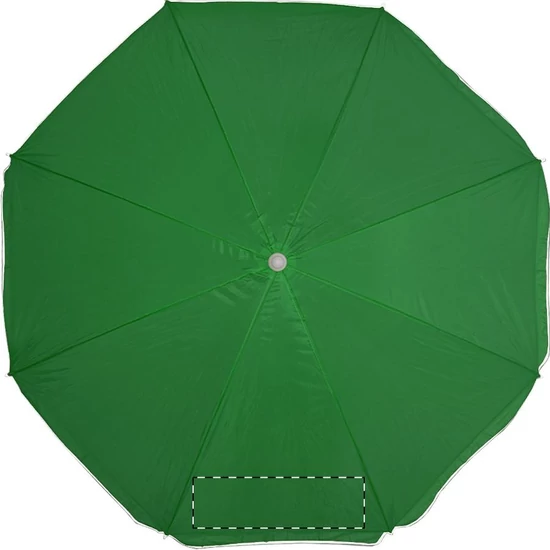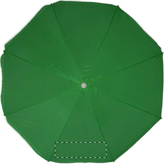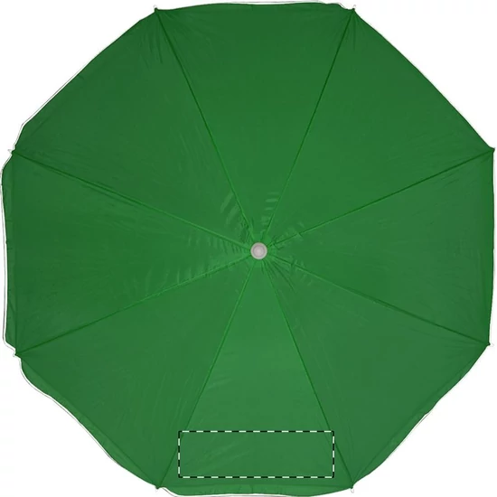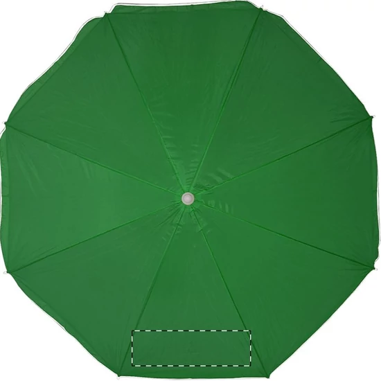 | 8 paneles napernyő a szélén kontrasztos csíkkal, fehér fém rúddal. Anyaga: nylon, 70 T. | |