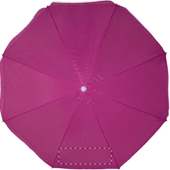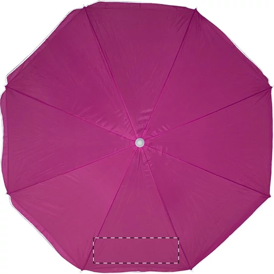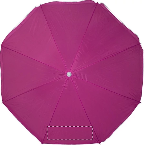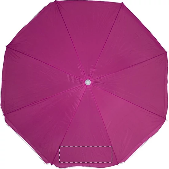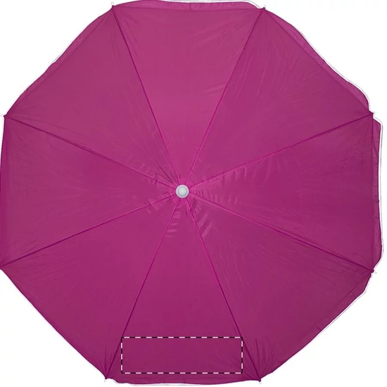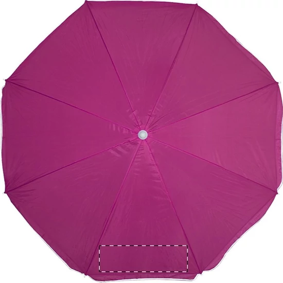 | 8 paneles napernyő a szélén kontrasztos csíkkal, fehér fém rúddal. Anyaga: nylon, 70 T. | |