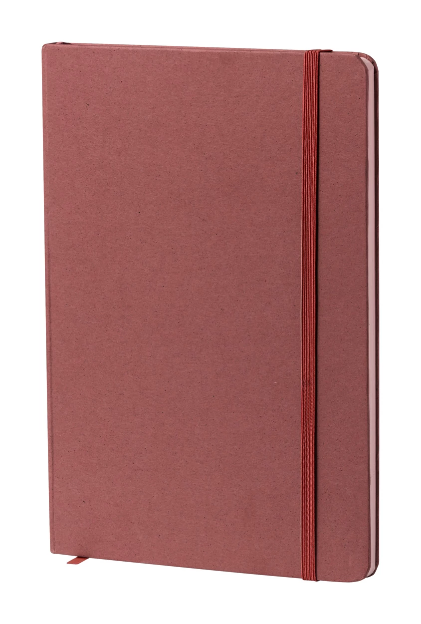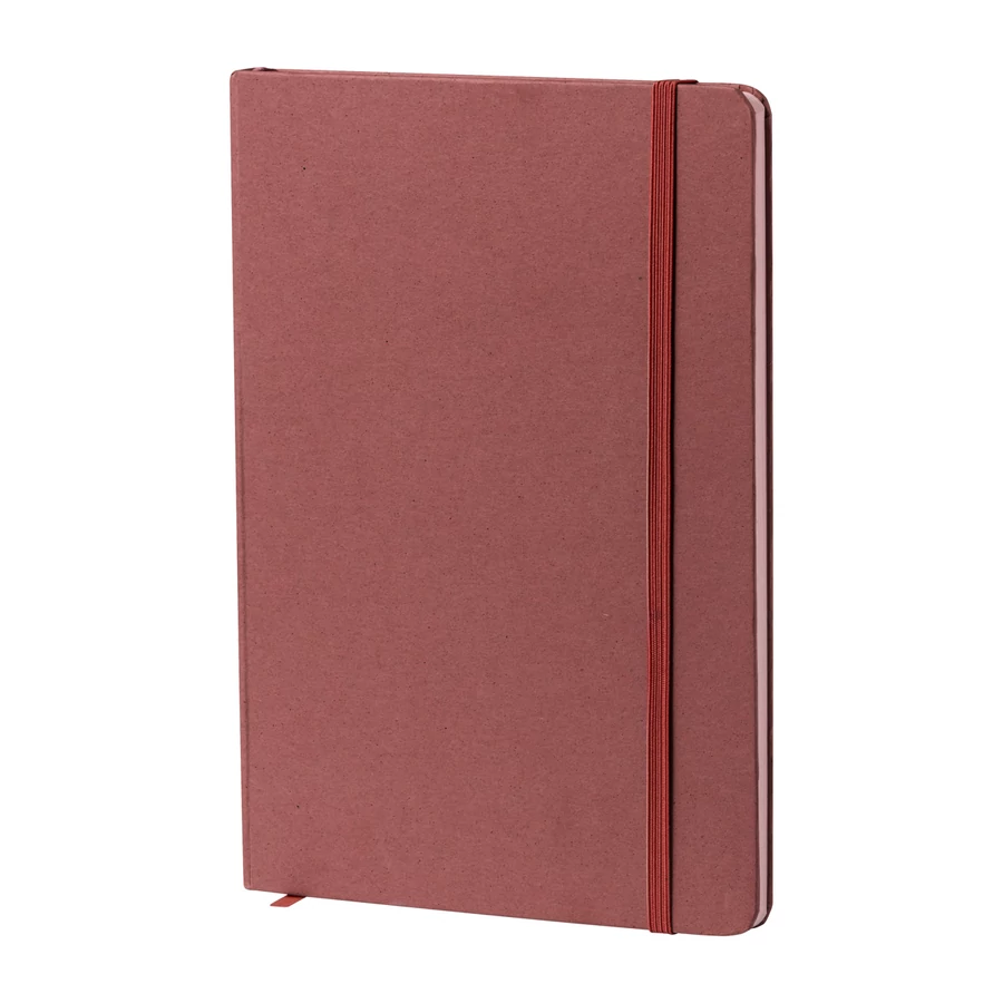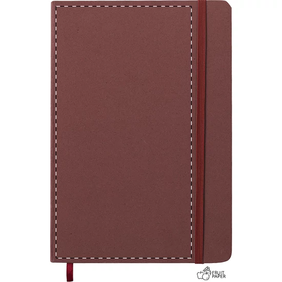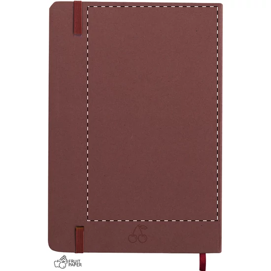 | Gyümölcspapír borítású jegyzetfüzet 80 vonalas lappal, újrahasznosított papírból. Könyvjelzővel és gumipánttal. A5 méretű. | |