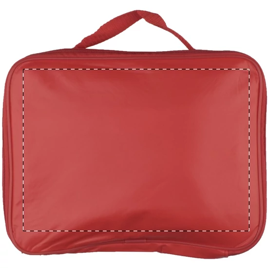 PVC anyagból készült, cipzáras hűtőtáska hálós rekesszel.