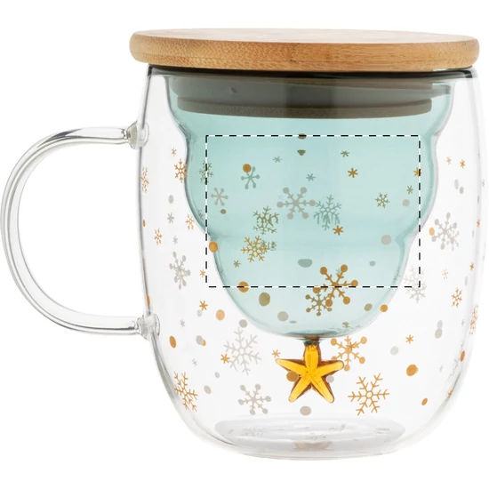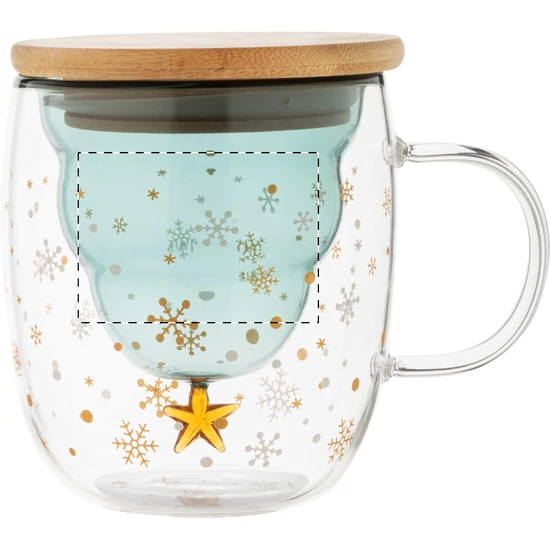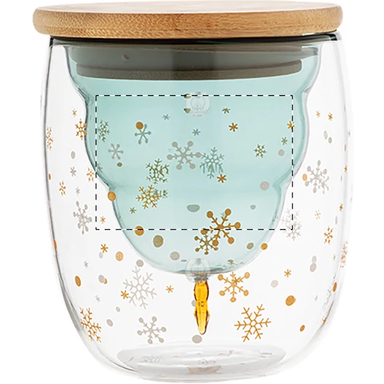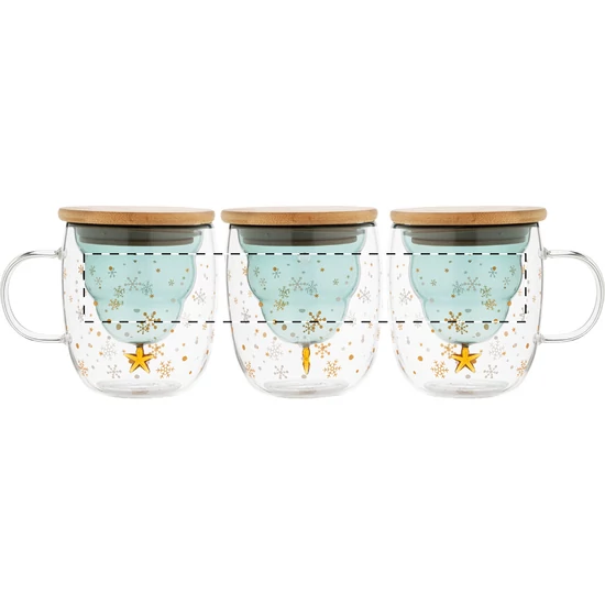 | Duplafalú boroszilikát üveg bögre bambusz tetővel, hópehely mintával és belül fejjel lefelé néző karácsonyfával, 200 ml. Kraft papír dobozban. | |