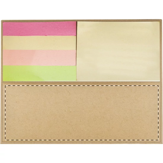 Ház alakú, újrahasznosított kartonból készült jegyzetadagoló 300 lapos újrahasznosított kraft papír jegyzetlappal. 25 sárga öntapadós jegyzetlapot és 100 oldaljelölőt (4 színben) tartalmaz a tetején.