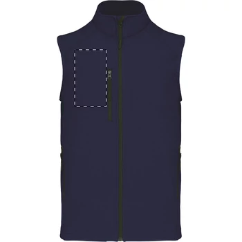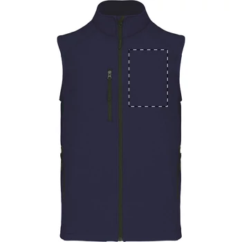 Háromrétegű, légáteresztő, szél- és vízálló, cipzáras softshell testmelegítő mellény cipzáras mellkasi és oldalsó zsebekkel. Légáteresztő középső réteggel és mikroszálas polár belső réteggel. 95% poliészter és 5% elasztán, 300 g/m². Kariban márkatermék.