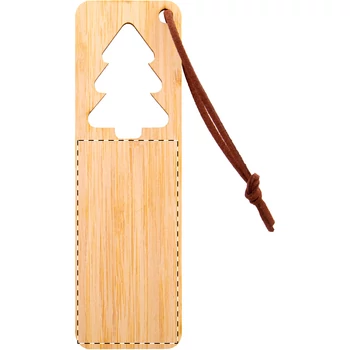 | Rétegelt bambuszból készült könyvjelző karácsonyi kivágással és PU bőr zsinórral. | |