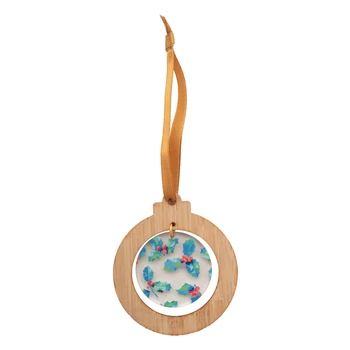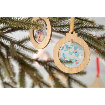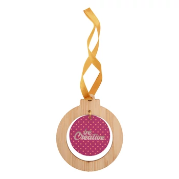 | Egyedi gyártású, bambusz furnérból és akrilból készült karácsonyfadísz arany szalagon. Az ár tartalmazza az akril full colour emblémázásának költségét egy oldalon. Minimális rendelési mennyiség 100 db. | |