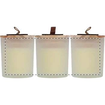 Vanília illatú gyertya üveg tartóban, hópelyhes fa fedéllel. | |