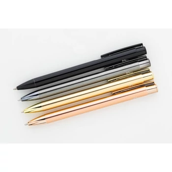 | Újrahasznosított alumínium golyóstoll fényes metál borítással. Kék tollbetéttel. | |