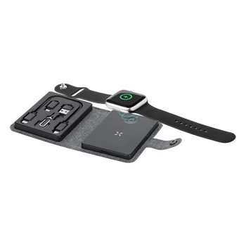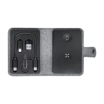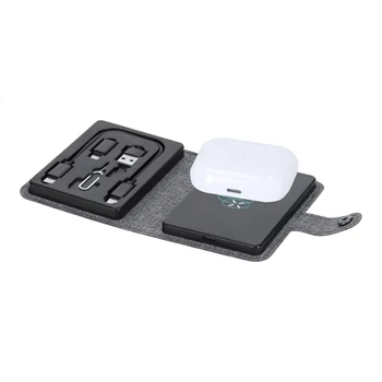 | USB töltő szett 300D RPET poliészter tokban. Tartalmaz egy vezeték nélküli gyorstöltőt (15W), SIM-kártya eltávolítót és USB töltőkábelt micro USB, USB-C és Lightning csatlakozókkal, USB és USB-C bemenettel. Okostelefonok, fülhallgatók és okosórák töltésére alkalmas. | |