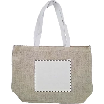 | Juta strandtáska azonos színű fülekkel és elülső zsebbel. | |