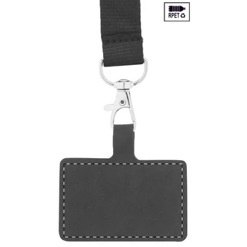 RPET mobiltartó nyakpánt fém karabinerrel, biztonsági csattal és hozzáillő színű telefonbetéttel.