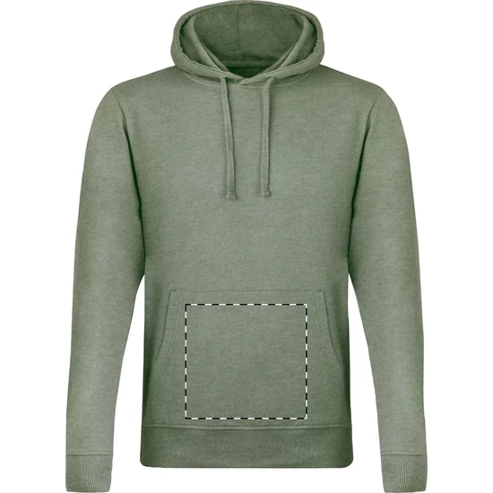 Kapucnis pulóver elülső zsebbel. 35% pamut és 65% poliészter, 175 g/m².