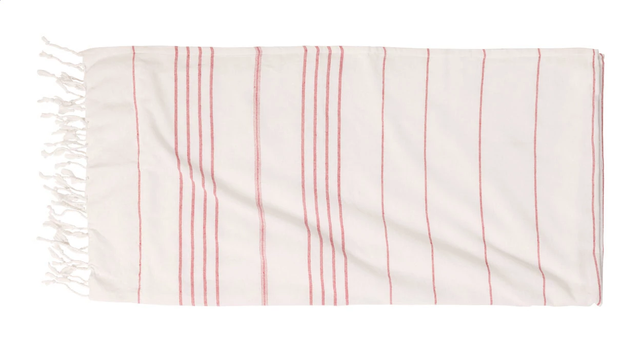 | Kéttónusú pareo strandtörölköző polipamut anyagból. 50% organikus pamut és 50% poliészter keverék, 280 g/m². | |
