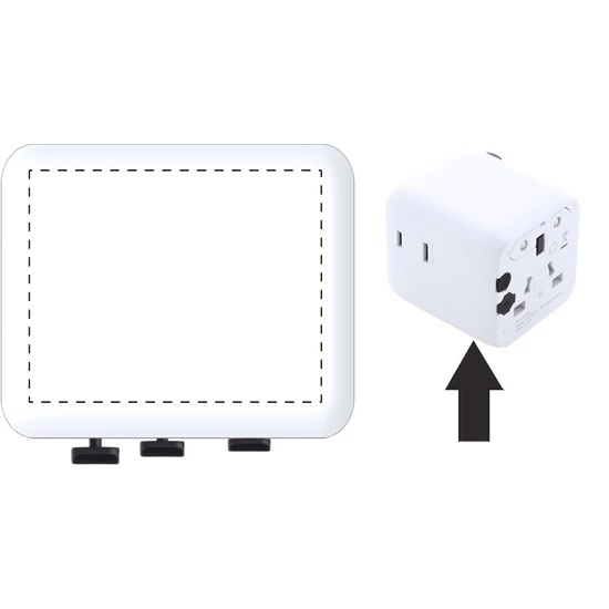 | Ultrakompakt, univerzális, világszerte használható utazási adapter újrahasznosított PC-műanyagból, beépített fali csatlakozókkal az USA, Európa, Egyesült Királyság és Ausztrália látogatására. | |