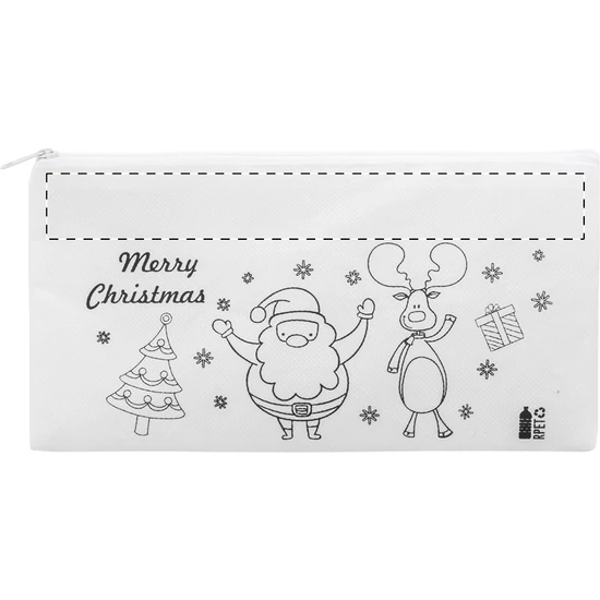 | Karácsonyi színezhető cipzáras tolltartó RPET non-woven anyagból, 5 db zsírkrétával. | |