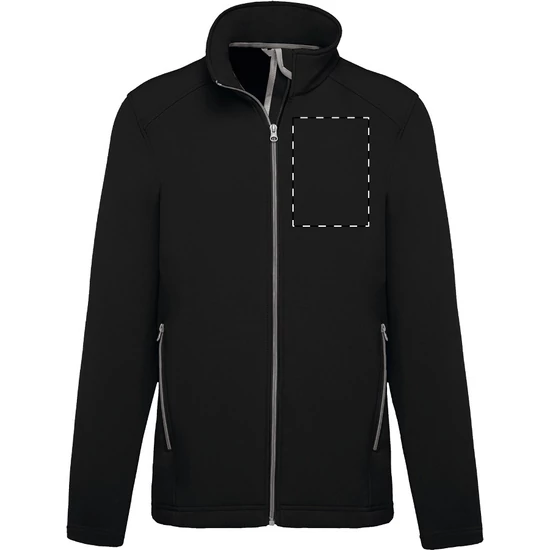 Kétrétegű, cipzáras softshell kabát cipzáras oldalzsebekkel. Kontrasztos cipzárakkal. Vízlepergető anyagból. Külső: 95% poliészter és 5% elasztán. Belső: 100% poliészter mikro polár gyapjú. 300 g/m². Kariban márkatermék.