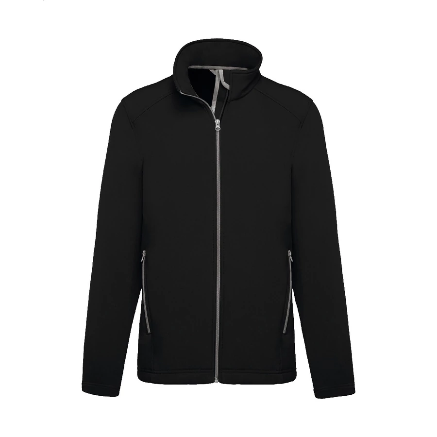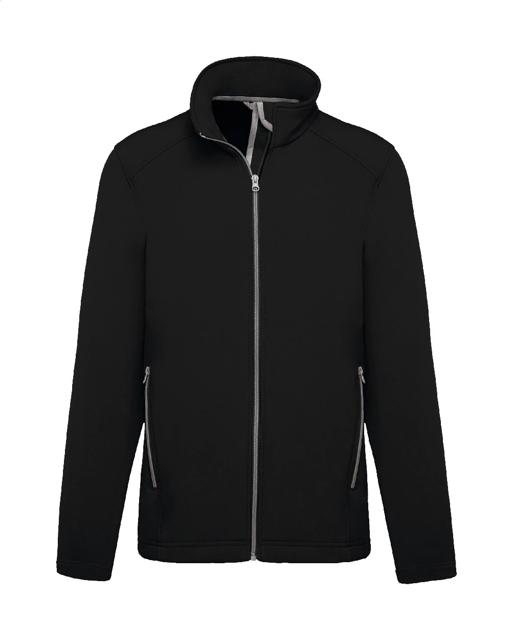 Kétrétegű, cipzáras softshell kabát cipzáras oldalzsebekkel. Kontrasztos cipzárakkal. Vízlepergető anyagból. Külső: 95% poliészter és 5% elasztán. Belső: 100% poliészter mikro polár gyapjú. 300 g/m². Kariban márkatermék.