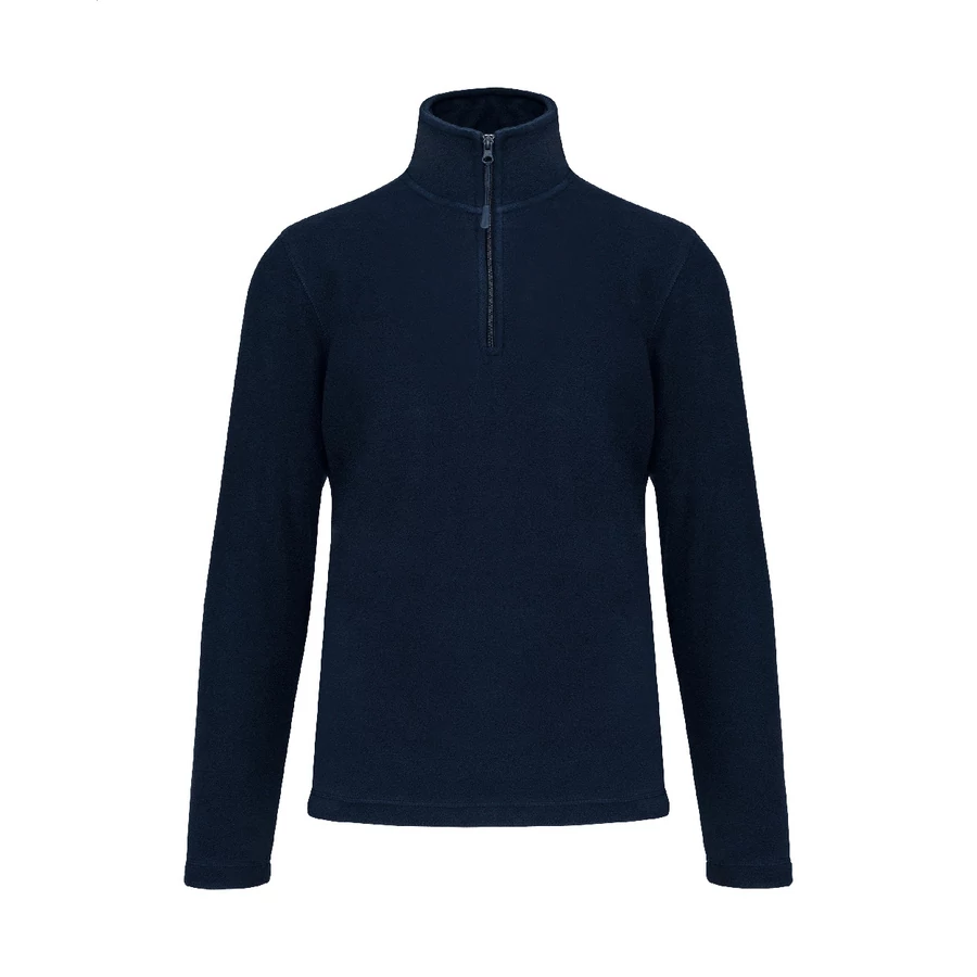 Mikroszálas polár kabát rövid cipzárral, oldalsó zsebekkel és bolyhosodásgátló bevonattal. 100% poliészter, 300 g/m². Kariban márkatermék.