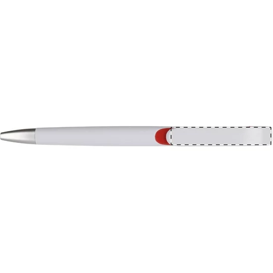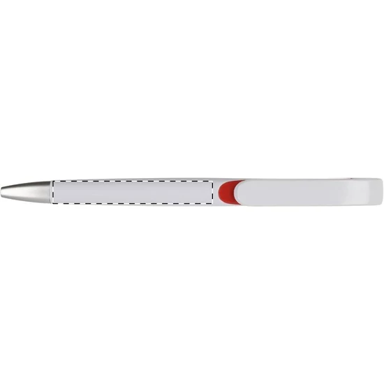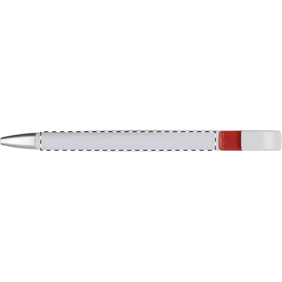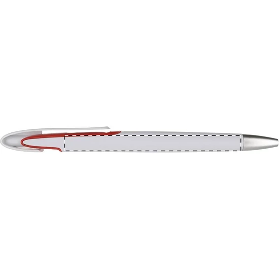| Fehér testű, műanyag golyóstoll, ezüst hatású tollvéggel. A klipsz alatt színes betét található. Kék tollbetéttel szállítjuk. | |