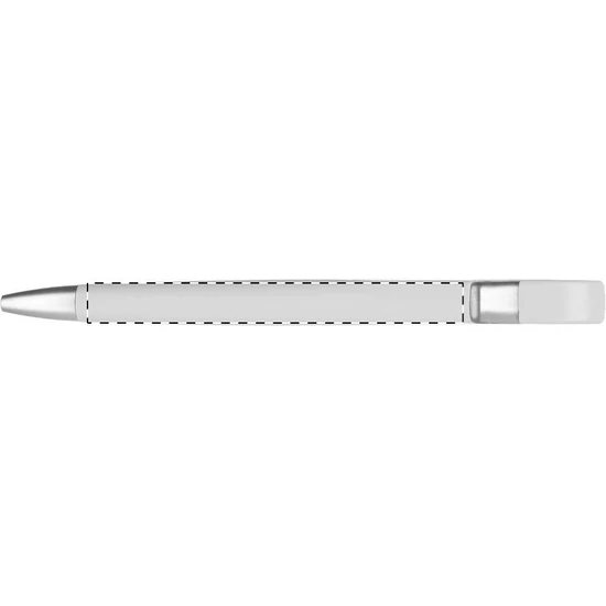 | Fehér testű, műanyag golyóstoll, ezüst hatású tollvéggel. A klipsz alatt színes betét található. Kék tollbetéttel szállítjuk. | |