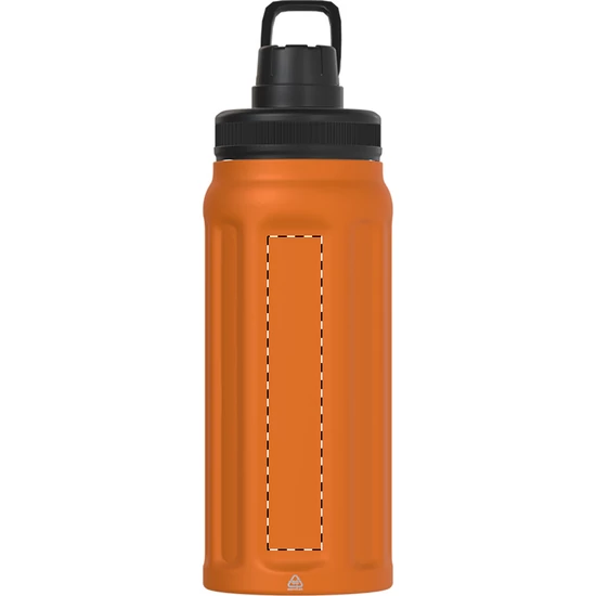 | Duplafalú, újrahasznosított rozsdamentes acélból készült termosz függőleges barázdákkal. PP ivófedéllel és beépített hordozófogantyúval. 540 ml. | |