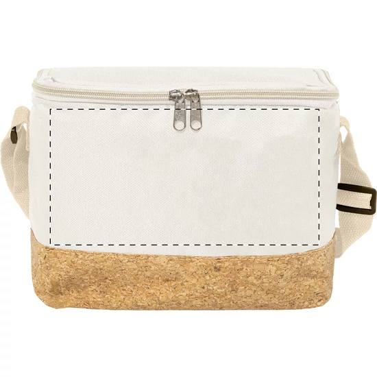 | 600D RPET poliészterből készült, cipzáras hűtőtáska természetes parafa talppal, PEVA béléssel és állítható vállpánttal. Megkülönböztető RPET címkével. | |