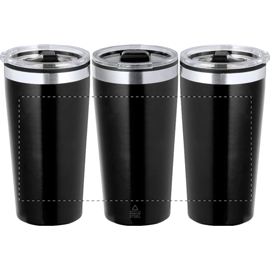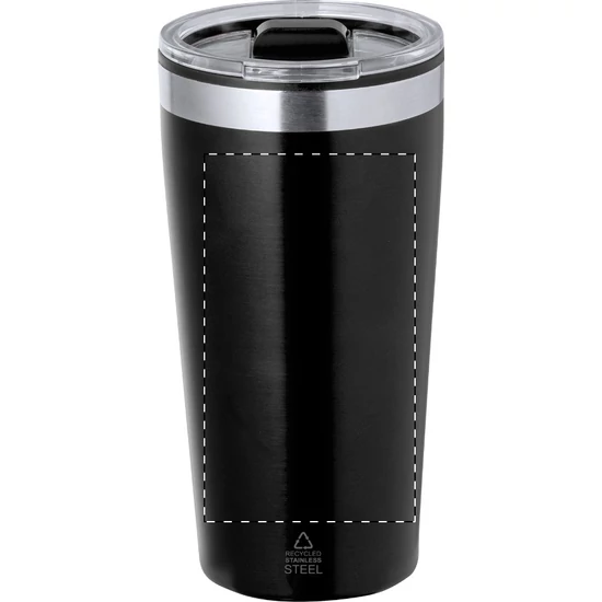 Duplafalú, újrahasznosított rozsdamentes acél thermo pohár PP műanyag ivófedéllel, 600 ml.