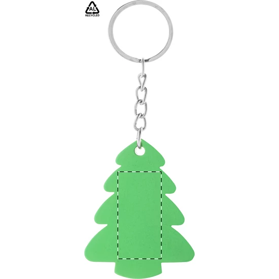 | Karácsonyfa alakú, újrahasznosított alumínium kulcstartó fém karikával. | |