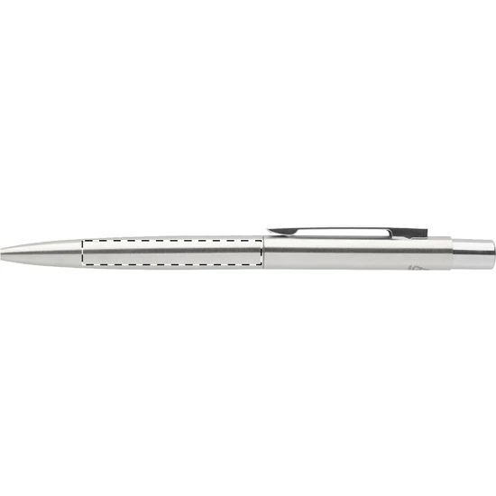 | Újrahasznosított rozsdamentes acél golyóstoll króm részletekkel. Kék tollbetéttel. | |