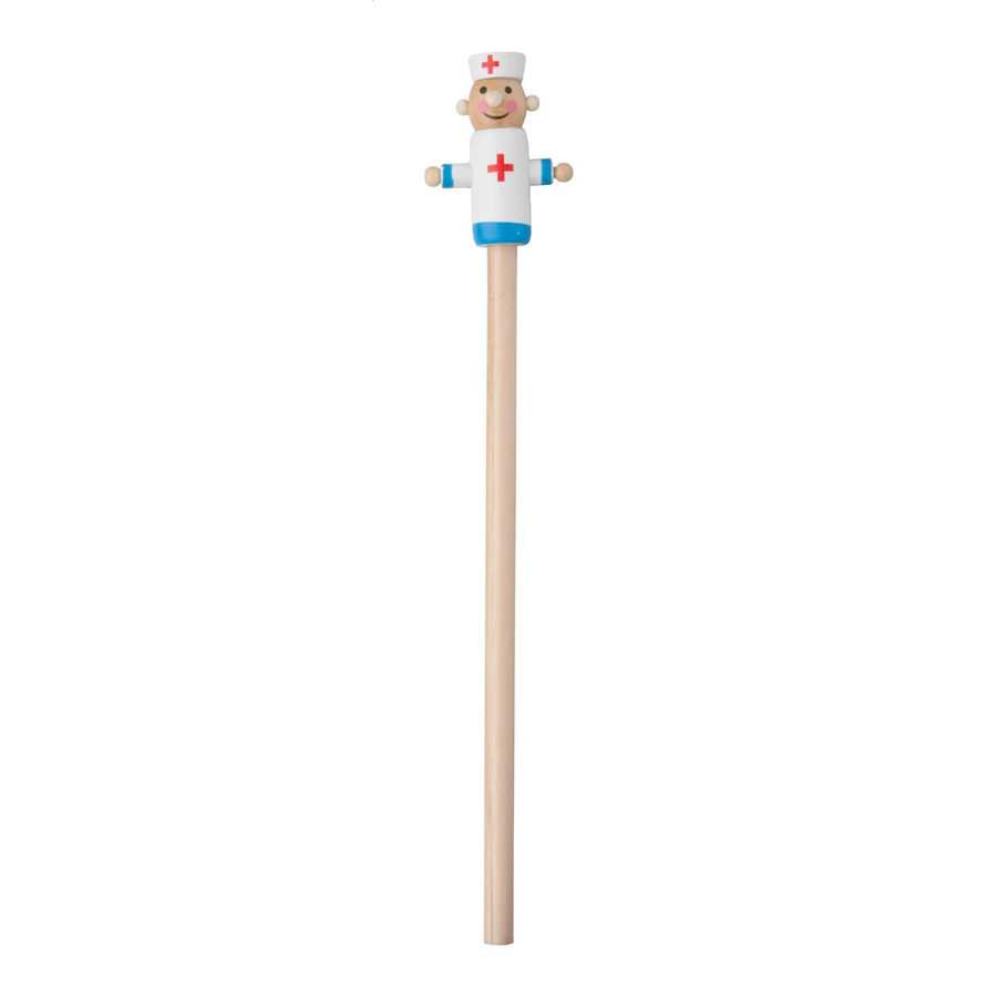 Fából készült ceruza, a végén doktor figurával. Nem kihegyezve szállítjuk.