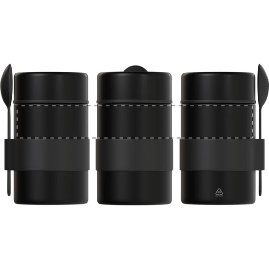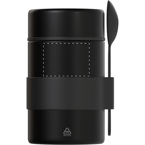 | Duplafalú, újrahasznosított rozsdamentes acélból készült, vákuumszigetelt ételdoboz szilikon fogantyúval és PP kanállal. 450 ml. | |