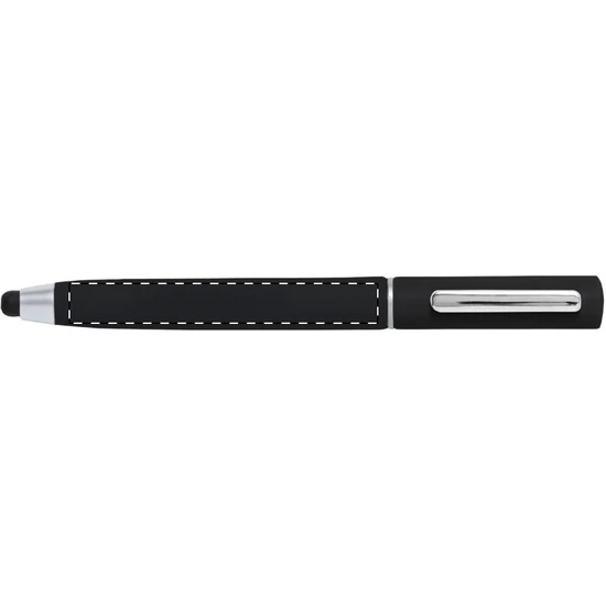 ABS műanyag tekerős golyóstoll és érintőképernyős toll beépített fülhallgató-tisztító készlettel. Kék tollbetéttel szállítjuk.