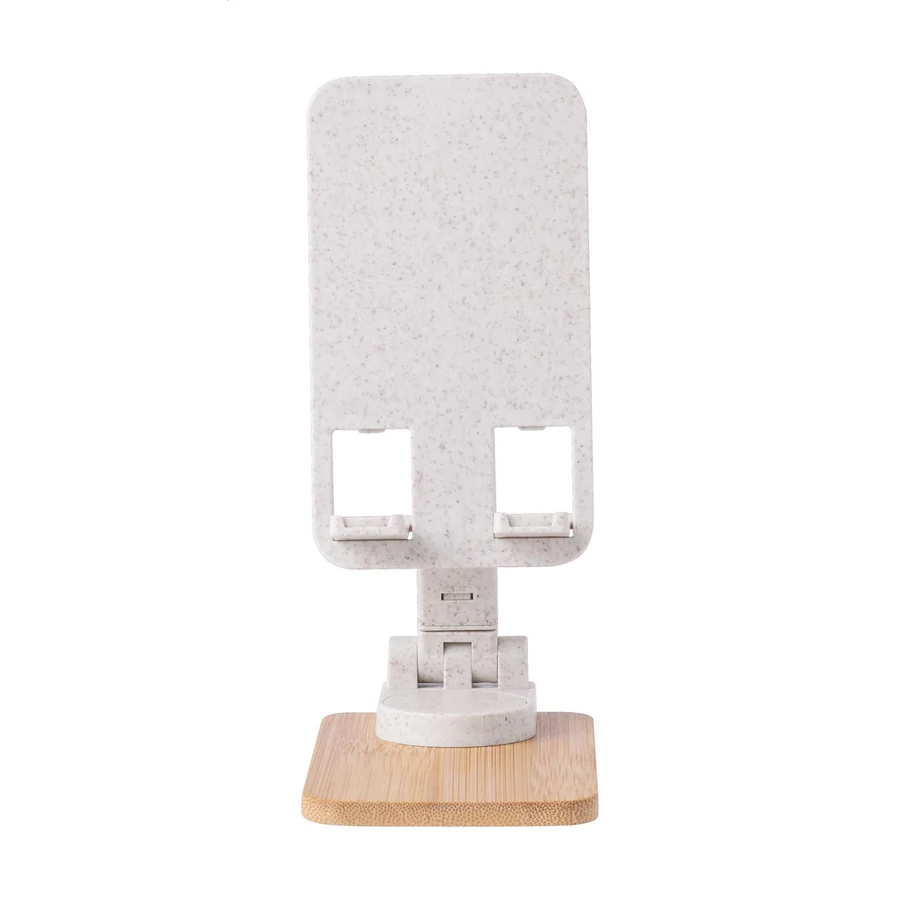 Összecsukható, állítható asztali mobiltelefon tartó ökológiai búzaszalma műanyagból és bambuszból.
