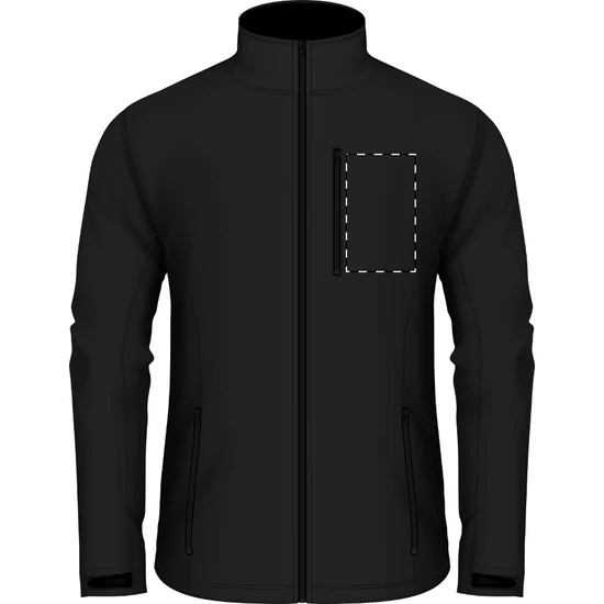 | 94% poliészter, 6% elasztán anyagú, vízhatlan és légáteresztő, cipzáras Softshell kabát. Elöl és a két oldalán cipzáras zsebbel, 300 g/m². | |