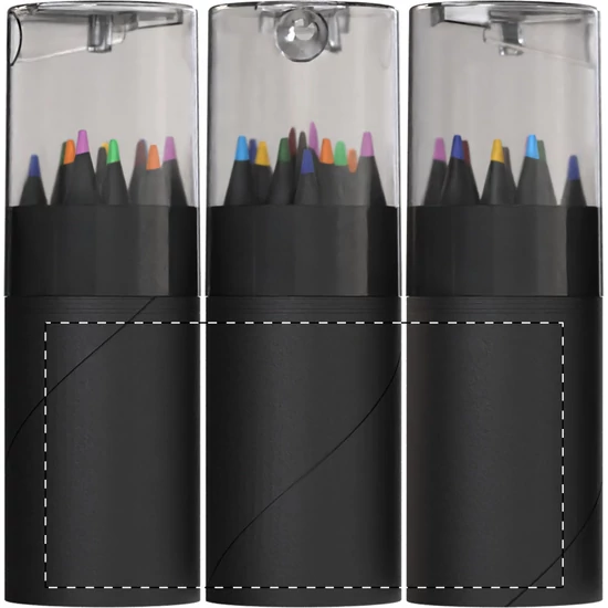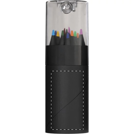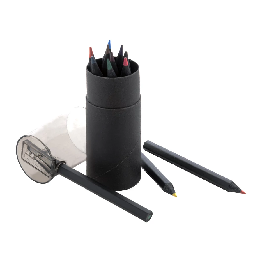 | 12 db-os fekete fa színű ceruzakészlet kerek fekete karton tokban, műanyag hegyezővel. | |