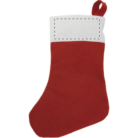 Poliészter anyagból készült, csizma alakú karácsonyi ajándéktasak.