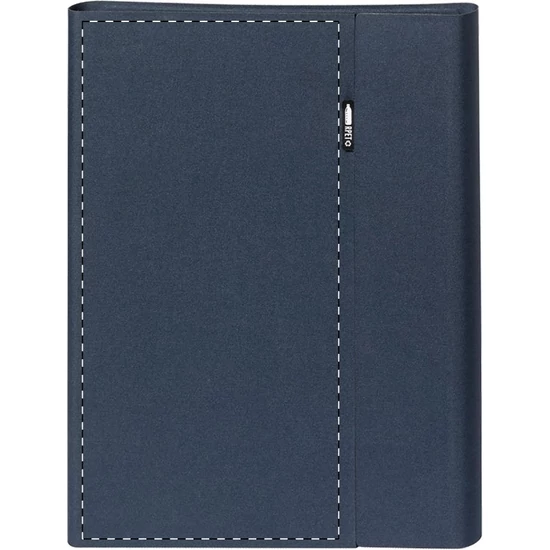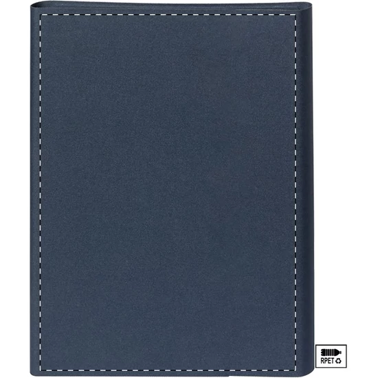 | A4 méretű, 600D RPET poliészterből készült iratmappa mágneses zárral, összehajtható mobiltelefon-tartóval és 20 vonalas lappal. Megkülönböztető RPET címkével ellátva. | |