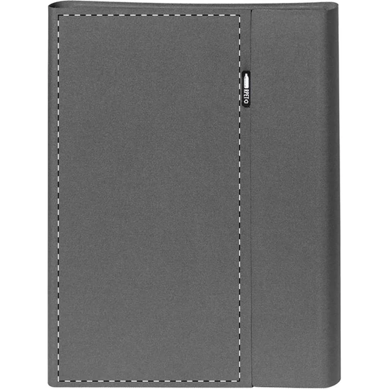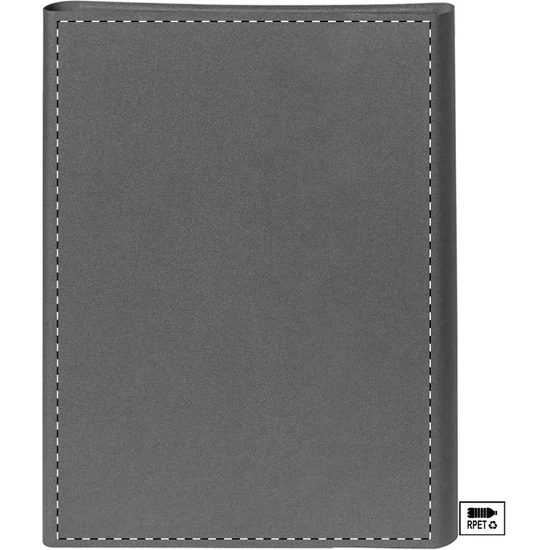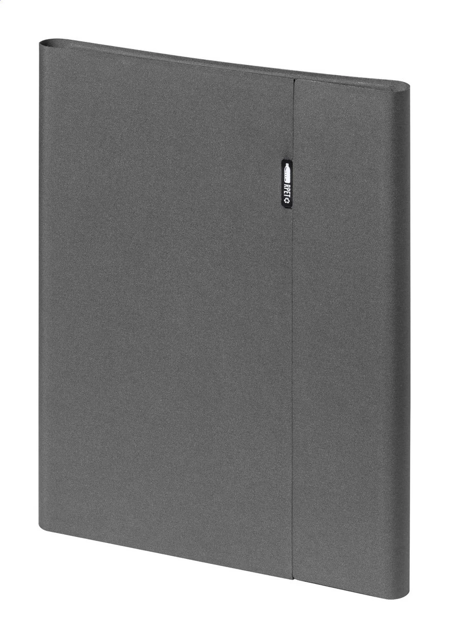 | A4 méretű, 600D RPET poliészterből készült iratmappa mágneses zárral, összehajtható mobiltelefon-tartóval és 20 vonalas lappal. Megkülönböztető RPET címkével ellátva. | |