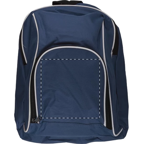 | Hátizsák cipzáras zsebekkel és párnázott hátrésszel és vállpánttal. Anyaga: 600D poliészter. | |