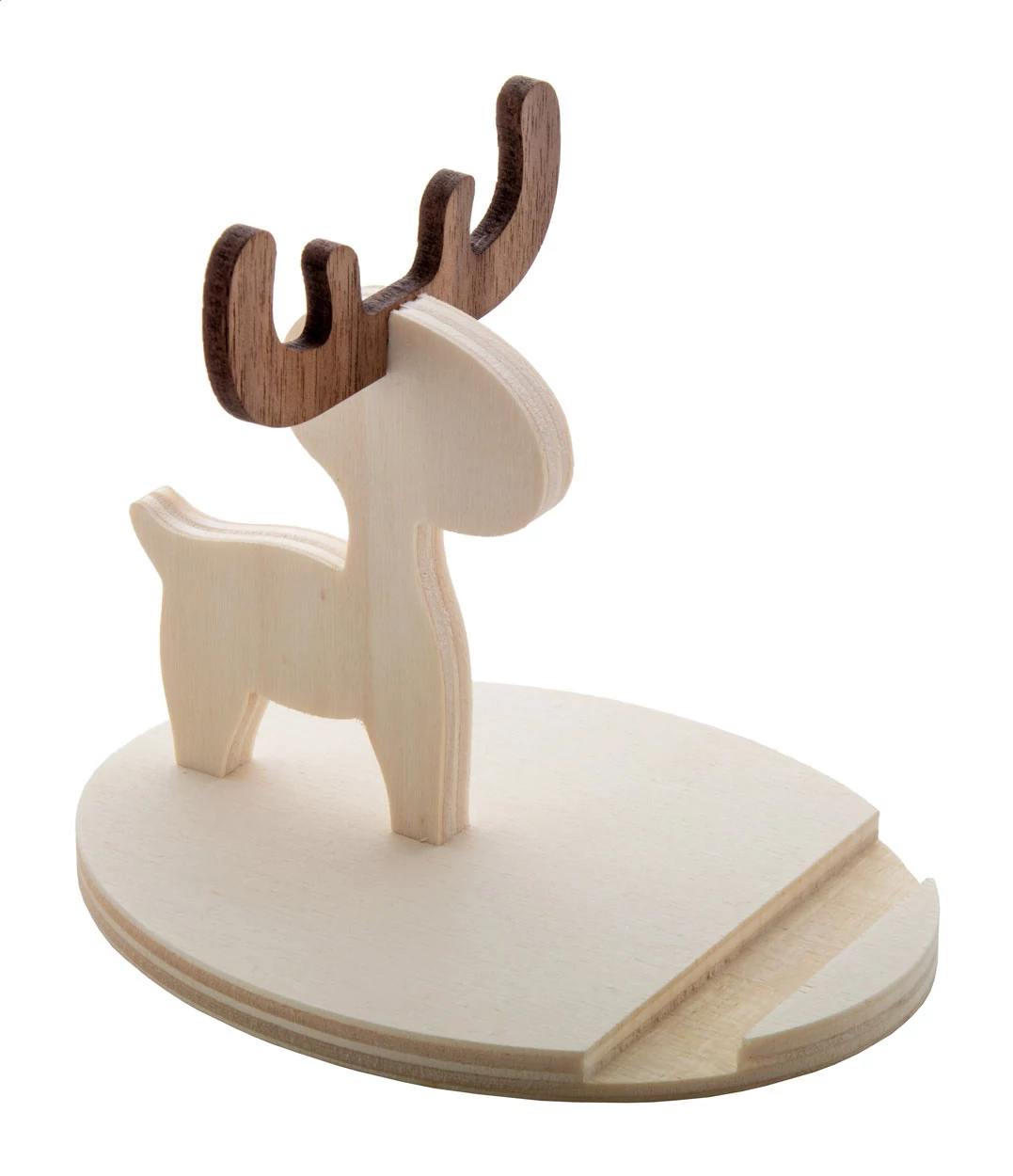 Szarvas alakú, rétegelt nyírfából készült mobiltelefon tartó. Lapra szerelve szállítjuk.