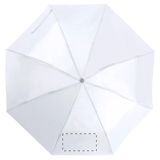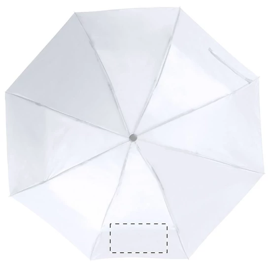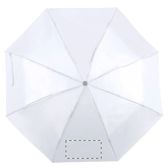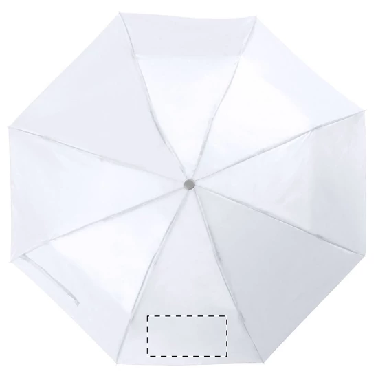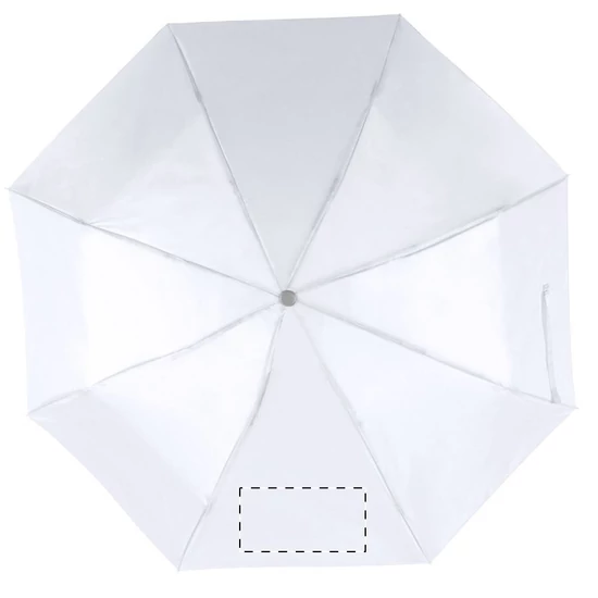 | Összecsukható, manuális 8 paneles esernyő, fém tengellyel és vázzal, az esernyő színével megegyező tokban. Anyaga: 170T poliészter. | |
