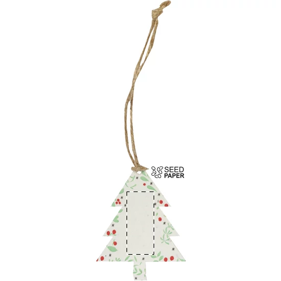 | Magpapír karácsonyfadísz juta zsinórral. A magpapír petúnia magokat tartalmaz különböző színekben, melyeket a madzagról leválasztva ültethetünk el. | |