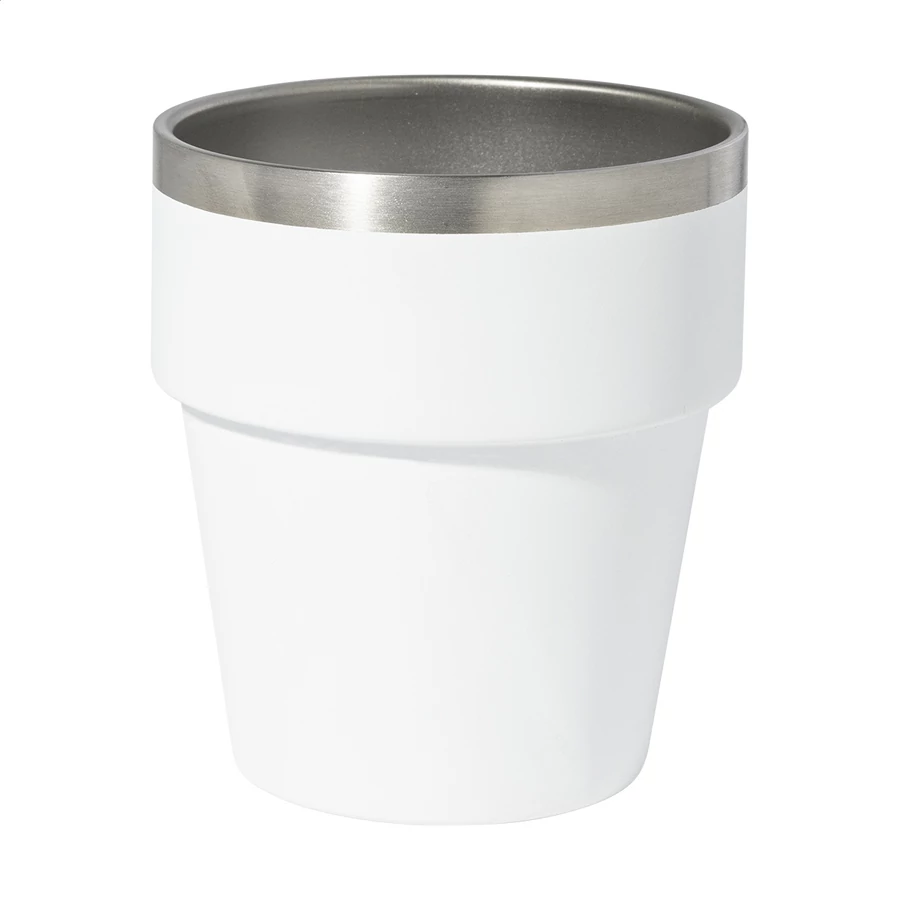 Duplafalú, újrahasznosított rozsdamentes acélból készült thermo pohár, 250 ml. Egymásra rakható.