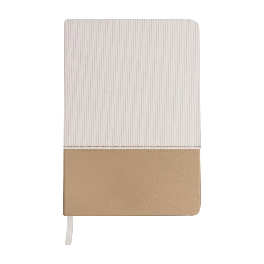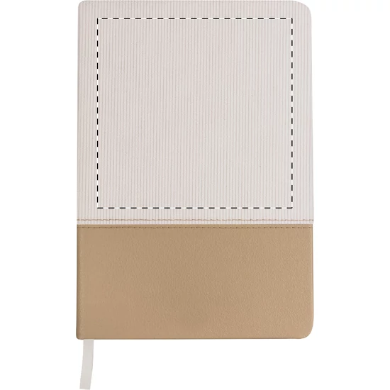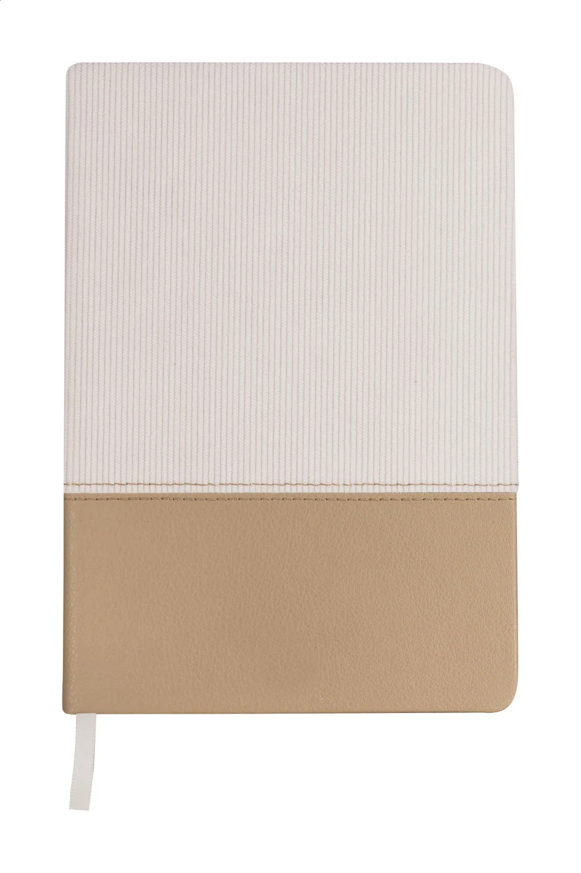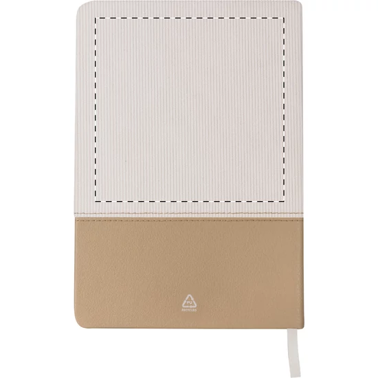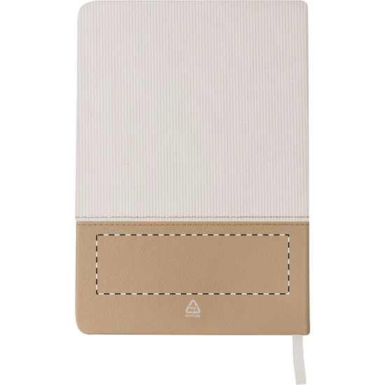 Texturált poliészter és újrahasznosított PU bőr borítású jegyzetfüzet könyvjelzővel és 80 vonalas lappal. A5 méretű.