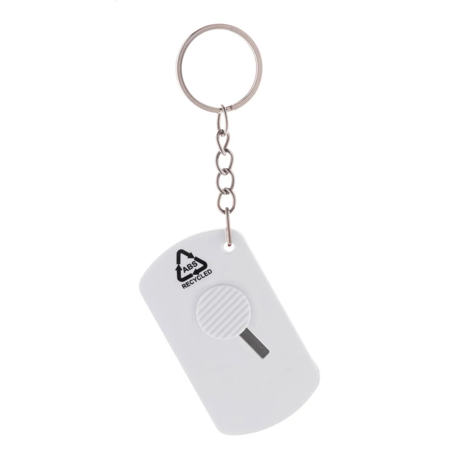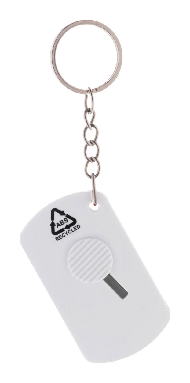 | Újrahasznosított ABS műanyagból és rozsdamentes acélból készült papírkés önbehúzódó pengével és fém kulcstartóval. | |