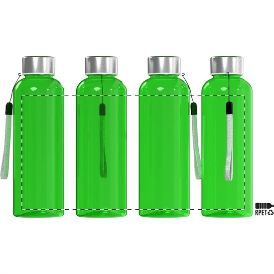 RPET kulacs rozsdamentes acél kupakkal egyedi gyártású, RPET neoprén borítással, full colour nyomott grafikával. Az ár tartalmazza a szublimációs nyomtatást. 500 ml. Minimális rendelési mennyiség: 50 db. Nem alkalmas szénsavas italok tárolására.
