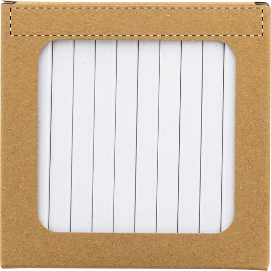 | 12 darabos téglalap alakú, fából készült színes ceruza szett, fehér kivitelben. Nagyméretű, kivágott kraft papír dobozban. Ideális UV LED nyomtatáshoz. | |
