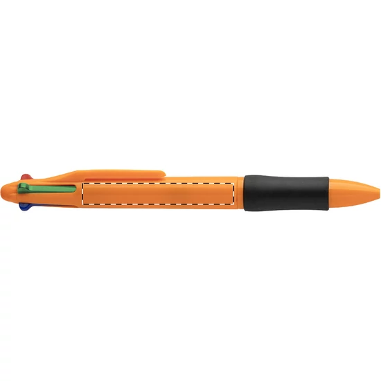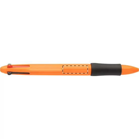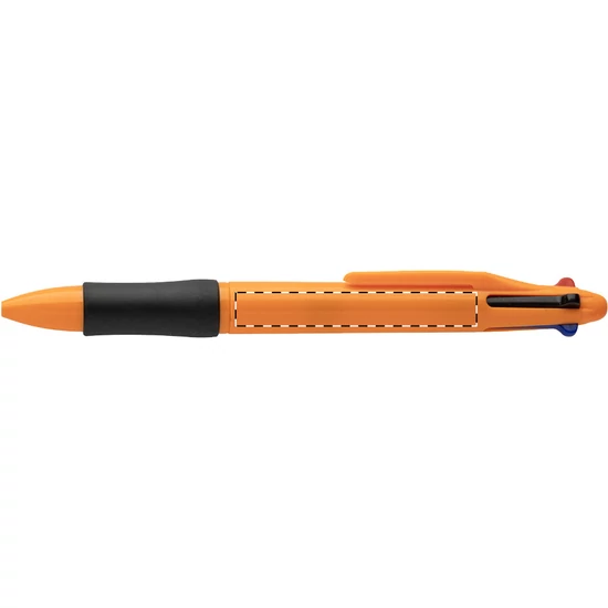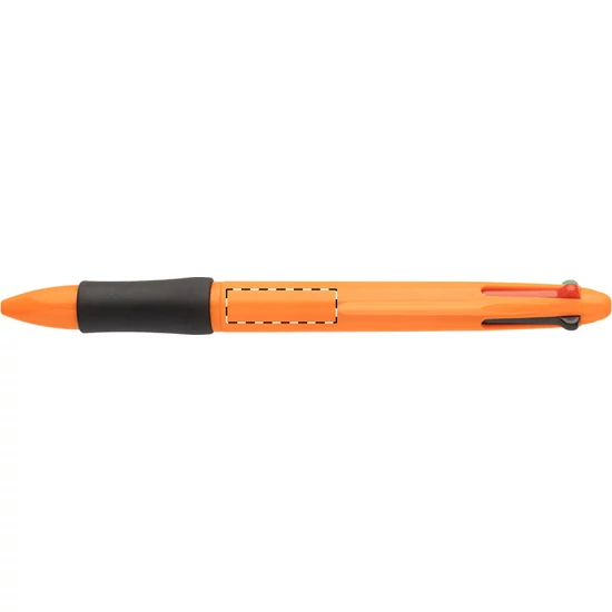 Újrahasznosított ABS műanyag, többszínű golyóstoll gumi markolattal. Fekete, kék, piros és zöld tollbetéttel.