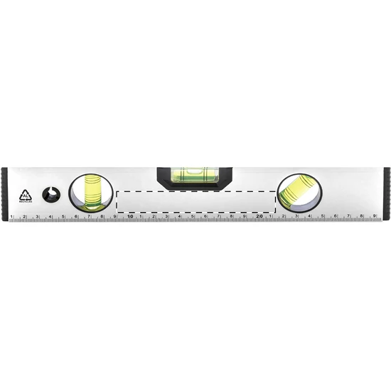 | Mágneses vízmérték újrahasznosított alumíniumból, három vízmértékkel (vízszintes, függőleges és 45°-os) és 30 cm-es vonalzóval. | |