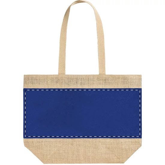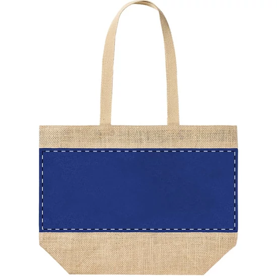 | Laminált juta és laminált pamut keverékéből készült színes strandtáska, hosszú hordfüllel. | |